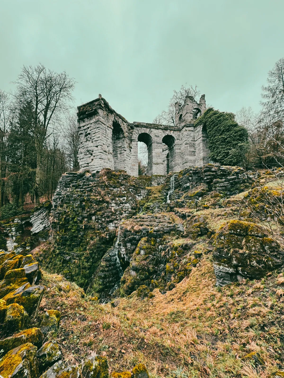 Trotz wunderschönem Frühlingswetter in den Tagen zuvor, ging es bei Schneeregen los. Der Dörnberg war komplett im Nebel. Keine Aussicht, keine Katjes — dafür lieber Margarine-Brot. Die Löwenburg: durchlaufen, Pommesgeruch inklusive. Herkules: umrundet. Wege, die ich bisher nur aus dem Vorbeifahren kannte und immer schon mal laufen wollte — gelaufen. Das war wirklich schön. Sightseeing auf Laufschuhen, genau wie ich es mir vorgestellt hatte, nur dass das Wetter anders war als im Kopfkino.